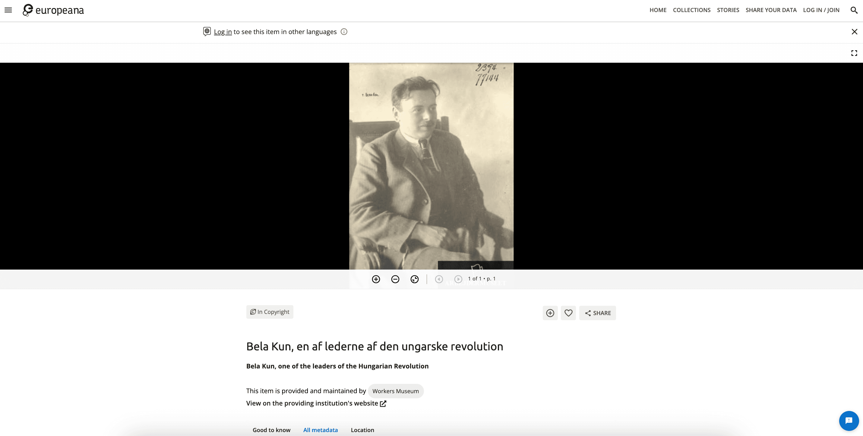 Fig. 2: Screenshot of the Europeana item with identifier F20130519062, retrieved from https://www.europeana.eu/en/item/2024917/photography_ProvidedCHO_Arbejdermuseet___ABA_F20130519062