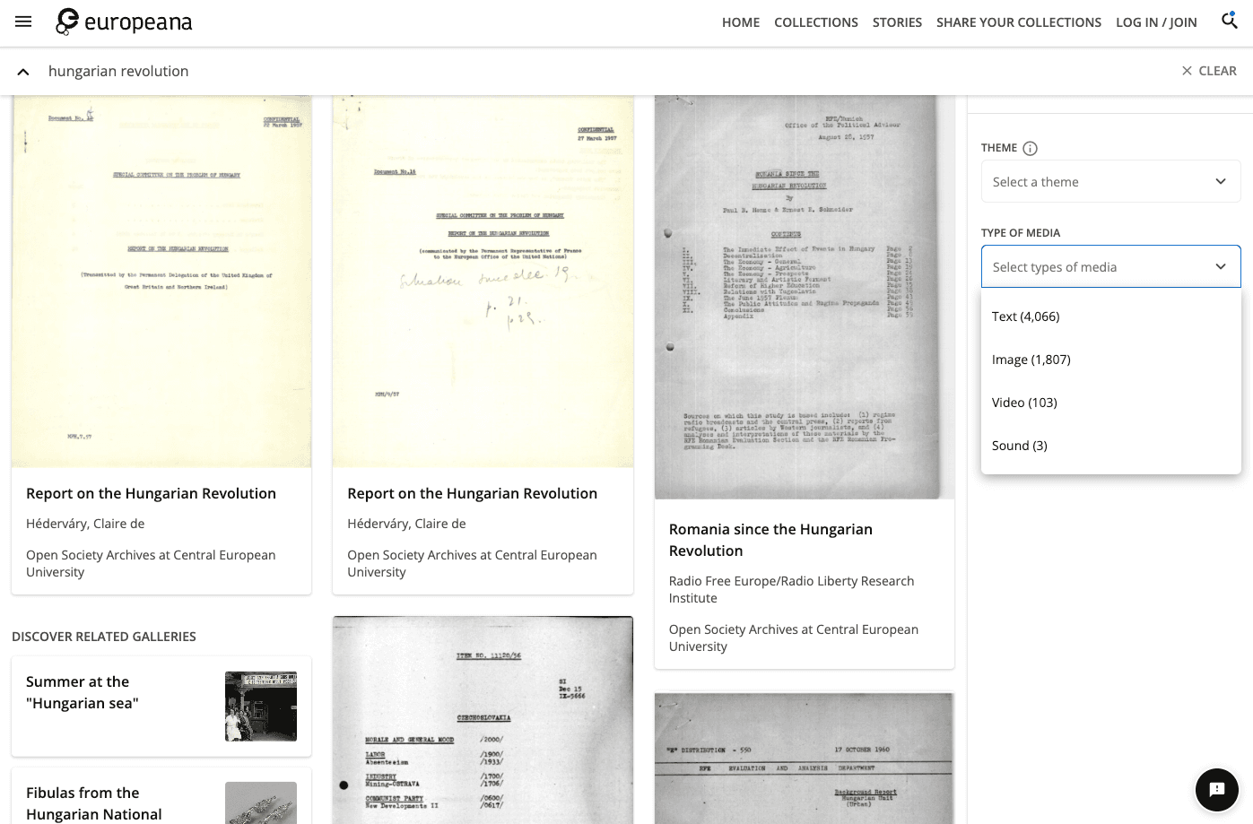 Fig. 1: A screenshot of results retrieved from the Europeana portal using the search term “hungarian revolution”